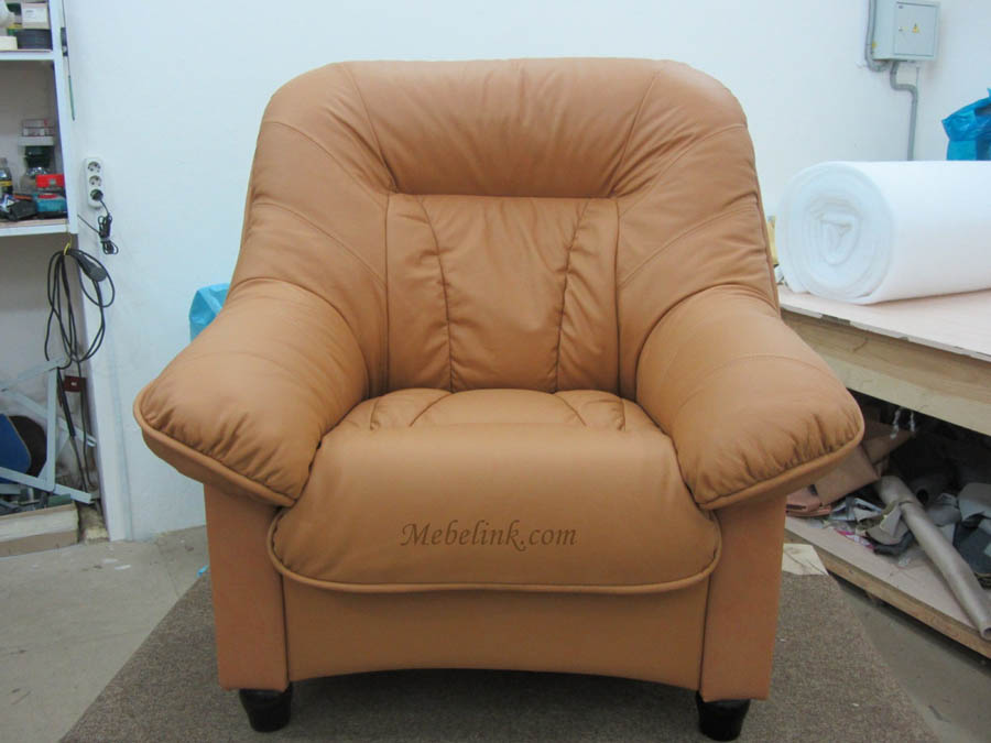 Обивку кресла экокожей мы выполняем на производственной базе мастерской. Для минимизации ваших расходов все заботы по транспортировке мебели в цех и обратно Mebelink берет на себя.